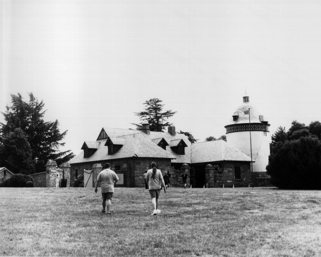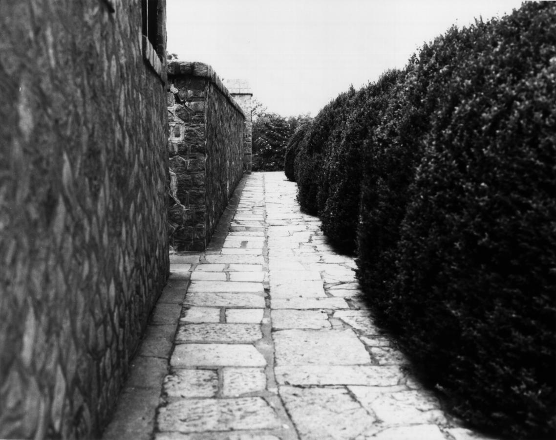 : A path next to the carriage house